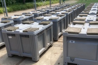 Vitale wortelstokken zijn verzameld op een groeiplaats in de omgeving van Wageningen. In elke container (610 l) zijn op 10 en 70 cm diepte 10 duizendknoopwortelstokken toegevoegd variërend in diameter van ca. 5-15 mm en een lengte van ca. 25-30 cm. Na het aanbrengen van de wortelstokken en de gewenste hoeveelheid vloeibaar substraat zijn de containers afgevuld met grond en vervolgens met een rubber ring en kunststof deksel luchtdicht afgesloten.