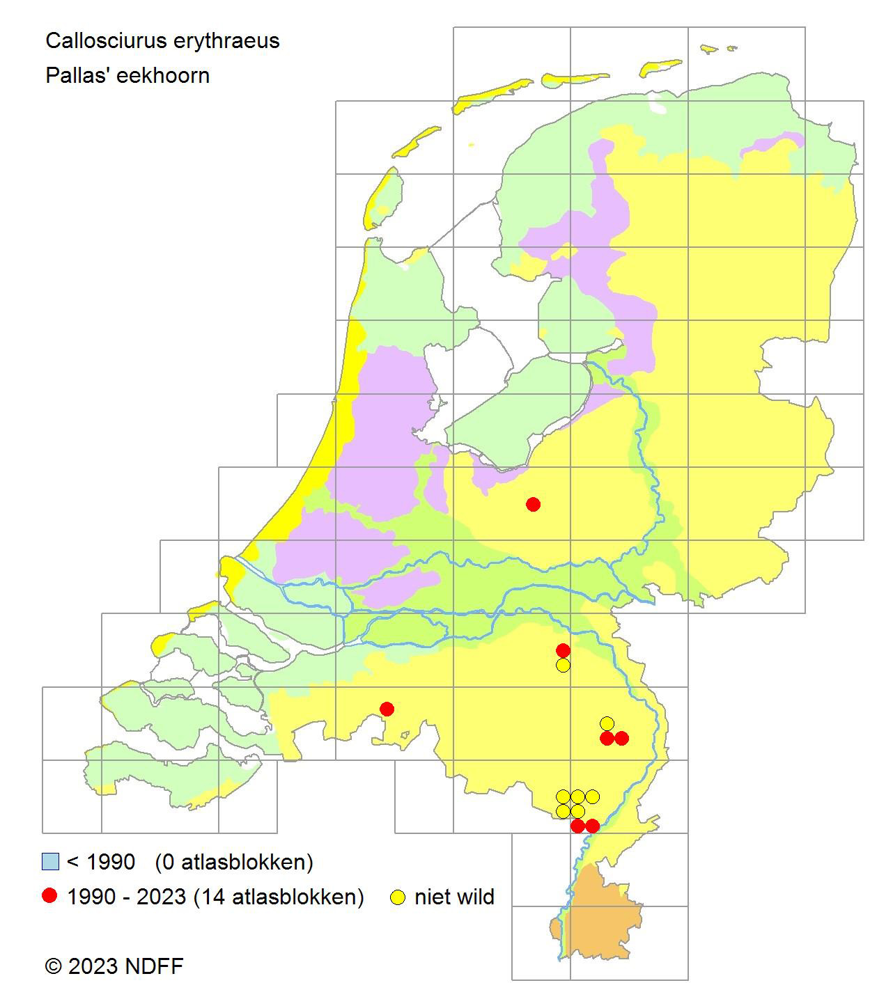 - Successful eradication of an invasive alien Pallas’s squirrel (Callosciurus erythraeus Pallas 1779) population in the Netherlands with support of the local community. La Haye, M. J., Janssen, R., Adriaens, T., Huysentruyt, F., Voskamp, P. J., Lammers, W., & Dijkstra, V., 2023 [artikel]